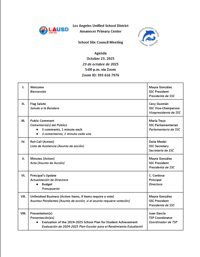 2025-2026 Title I LAUSD Parent and Family Engagement Policy